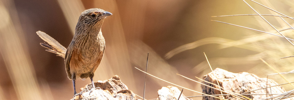 3 Grasswrens (Dusky, Kalkadoon & Carpentarian Grasswren); Grey Falcon; Cloncurry & Hooded Parrot; Painted Finch, Zebra & Gouldian Finch; Pictorella Mannikin; 2 Bowerbirds (Great, Spotted, Western Bowerbird); Rainbow Pitta; over 10 species of grass finch; 3 Fairywren (Purple-backed, White-winged and Red-backed Fairywren) and more!